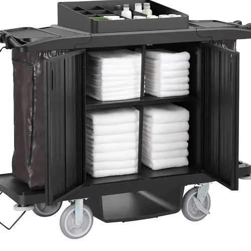 The Filta Deluxe is the ultimate housekeeping trolley to cart all supplies for guest rooms.